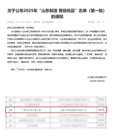 近日,山東省工業(yè)和信息化廳正式公布2025年第一批“山東制造·魯鏈優(yōu)品”名單。山東重工集團(tuán)旗下山推股份自主研發(fā)的DH46全液壓推土機(jī)憑借領(lǐng)先的技術(shù)實(shí)力與卓越的產(chǎn)品性能成功入選。