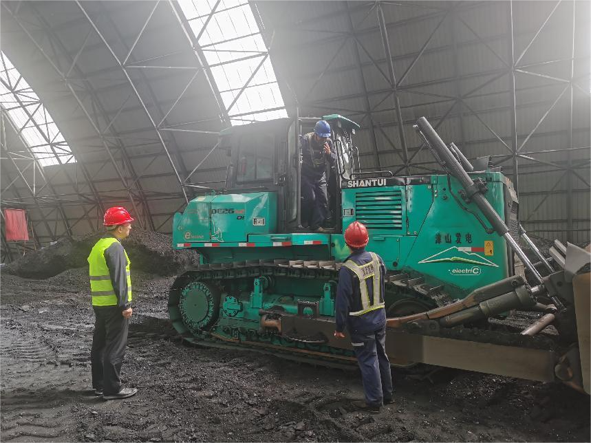 本項(xiàng)目主要涉及煤棚推煤工況,核心任務(wù)是將煤粉堆垛后傳輸至傳送帶,以保證電廠燃煤供應(yīng)的穩(wěn)定性。該電廠采用了四臺(tái)山推DE26-X2電動(dòng)推土機(jī),分別在四個(gè)煤棚作業(yè),形成了目前國(guó)內(nèi)電推設(shè)備集中度最高的作業(yè)區(qū)域。DE26-X2電推每日工作6-8小時(shí),中午休息1.5小時(shí),并在中午及下午作業(yè)結(jié)束后進(jìn)行充電,以確保設(shè)備的持續(xù)高效運(yùn)行。