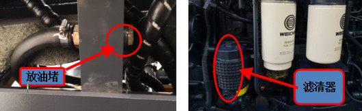 發(fā)動(dòng)機(jī)放油時(shí),發(fā)動(dòng)機(jī)應(yīng)在機(jī)油升溫至30-40℃,這樣污染物在懸浮狀態(tài)時(shí)放油。拆下燃油箱中側(cè)下部放油螺塞,通過(guò)燃油箱底部的放油孔放油。