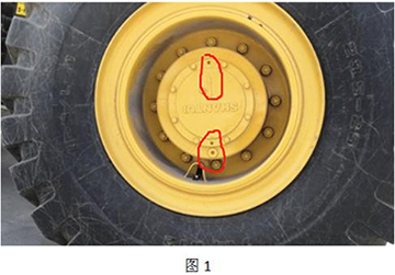 3、 將塞堵拆下后(圖1),將廢油用備用桶收集后妥善處理,將塞堵上的異物清理干凈。放油完畢后轉(zhuǎn)動(dòng)輪胎,將箭頭方向指示朝下。