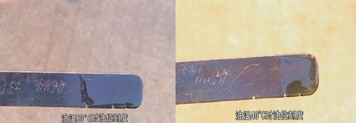80 ℃時(shí)油位應(yīng)在上刻度“HOT”及中間刻度之間。